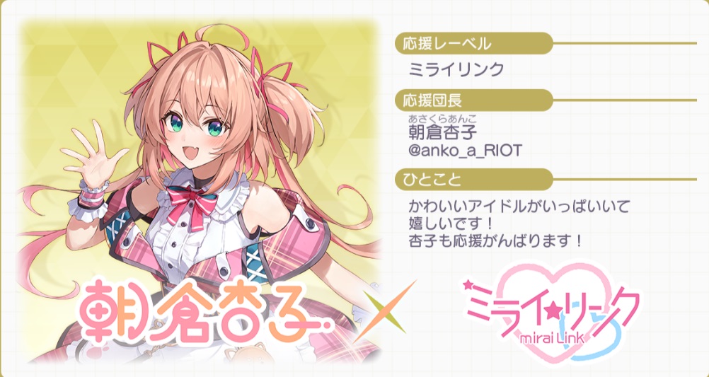 個人で集めた応援ポイントと同レーベル推しのプロデューサー全員がゲーム内で獲得した応援ポイントの合計がそれぞれ一定を超えるごとに、 各種アイテムを獲得することができます。