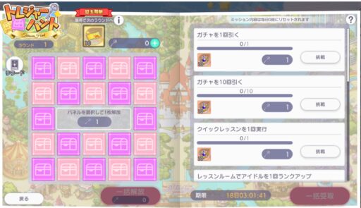 ミッションに挑戦して鍵を集め、宝箱を開封