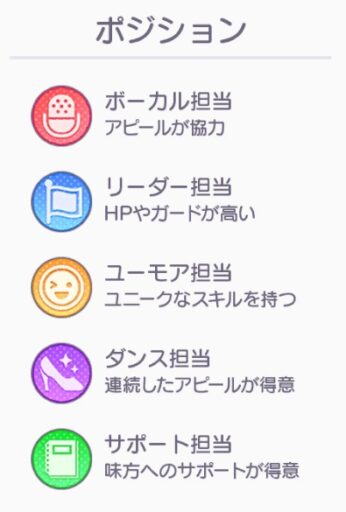 後列の3人は伸び伸びとパフォーマンスできるのでアピールやサポートが得意なアイドルがおすすめです。