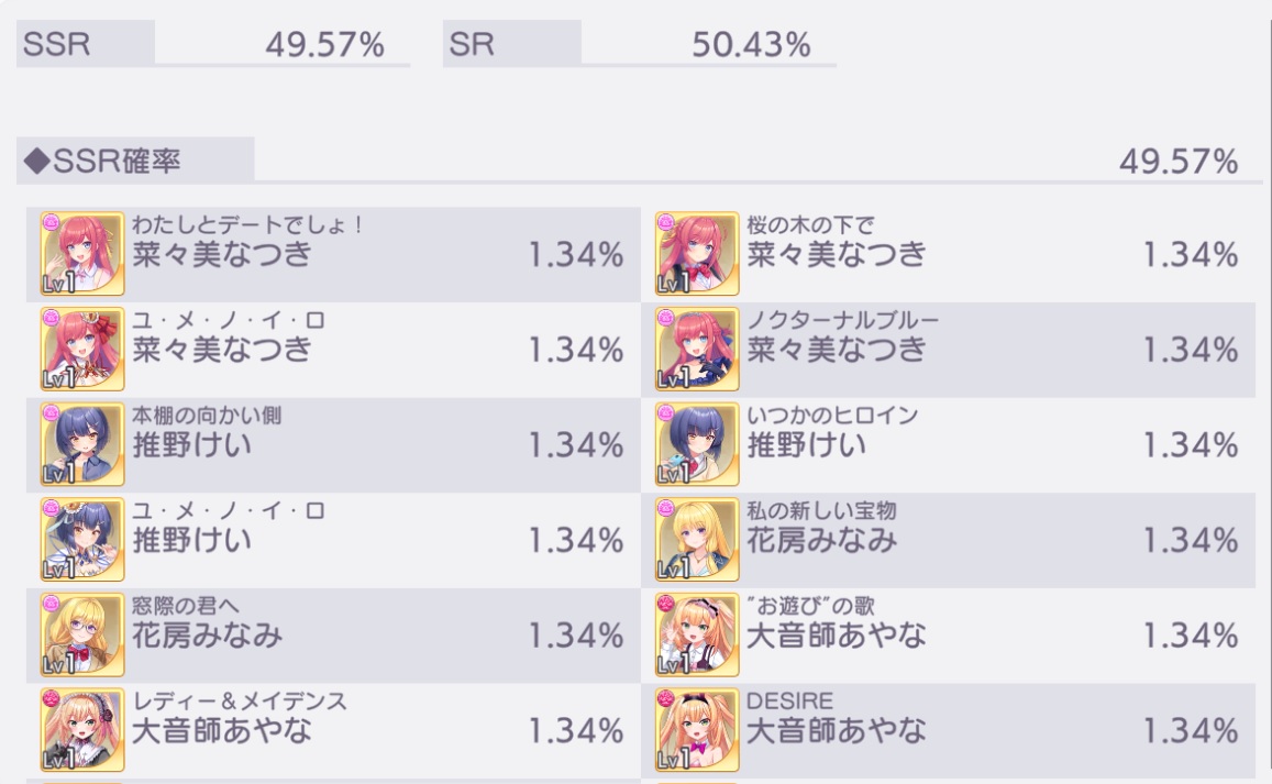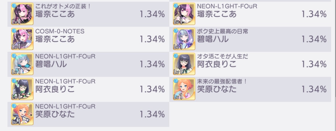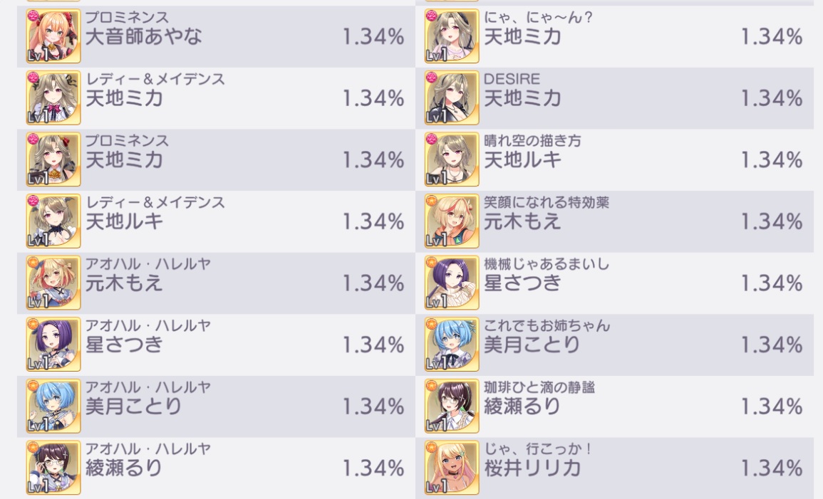 同じキャラを引くことでLVが上がります(上限60)