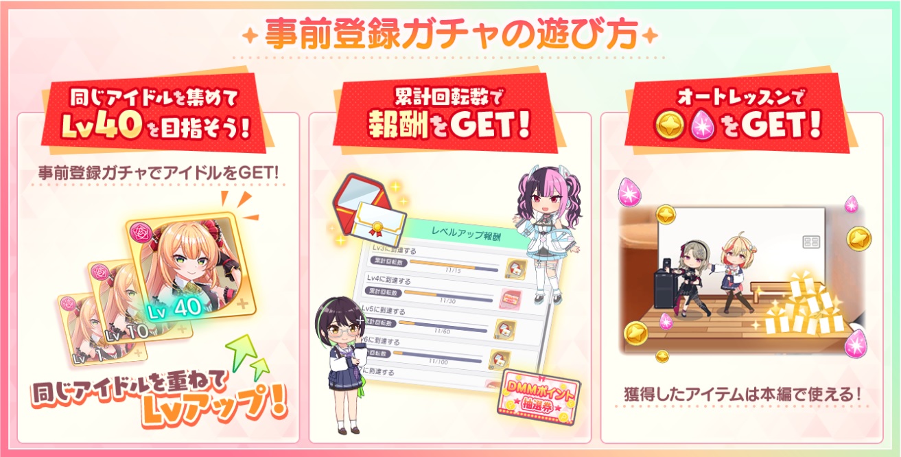 事前登録ガチャの実行回数に応じて、事前登録Lvがアップします。