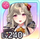 | Lv1 | 自身にパワー×650%の元気を付与する(5秒間) その後ターゲットと隣1人にパワー×120%のきゅんダメージを与え、魅了状態にする(このスキル効果終了まで) |