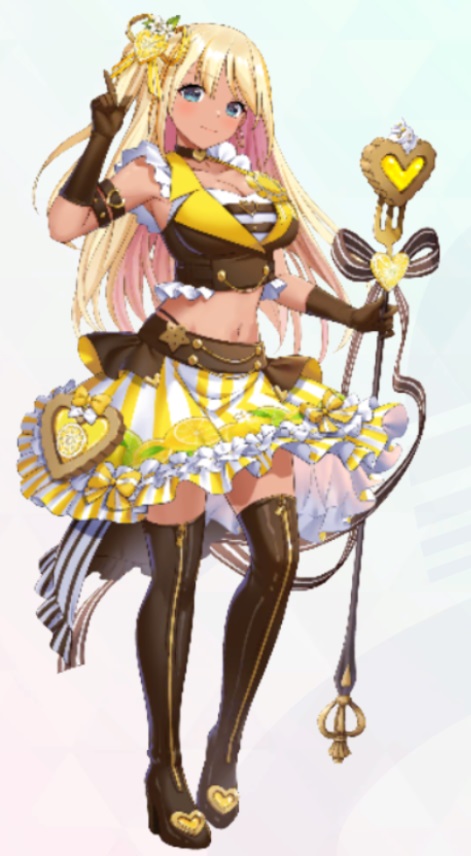| Lv1 | 自身の注目度を2上げつつ、 注目度が高い相手2~4人の元気を解除し、パワー×400%のきゅんダメージを与え、 混乱 (5秒) する また、この効果の発動後に相手全員のガードを30%ダウン(8秒) する |